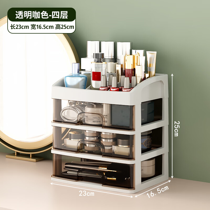 KAMAN化妆品收纳盒桌面防尘高级抽屉储物盒梳妆台护肤品口红面膜置物架 三层【防尘顶+抽*2+盒】1套