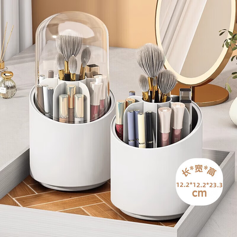 加度化妆品收纳盒旋转防尘化妆刷收纳筒梳妆台桌面笔筒口红眼影置物架