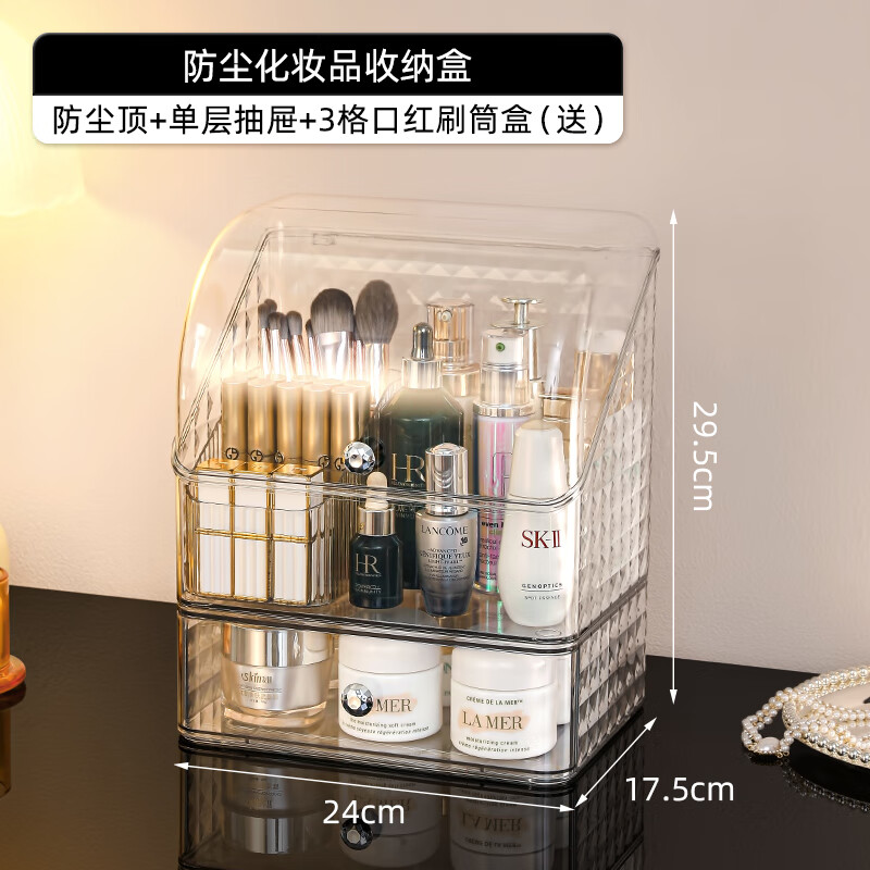 KAMAN化妆品收纳盒桌面防尘高级抽屉储物盒梳妆台护肤品口红面膜置物架 单层【防尘顶】1个