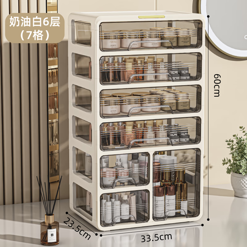 昂图化妆品收纳盒防尘梳妆台桌面口红护肤品整理箱高级感抽屉式置物架 升级六层款-奶白 免装抽屉顺滑