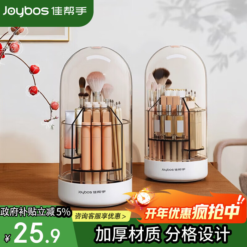 佳帮手化妆刷收纳盒旋转透明防尘首饰口红化妆品收纳盒桌面 带盖