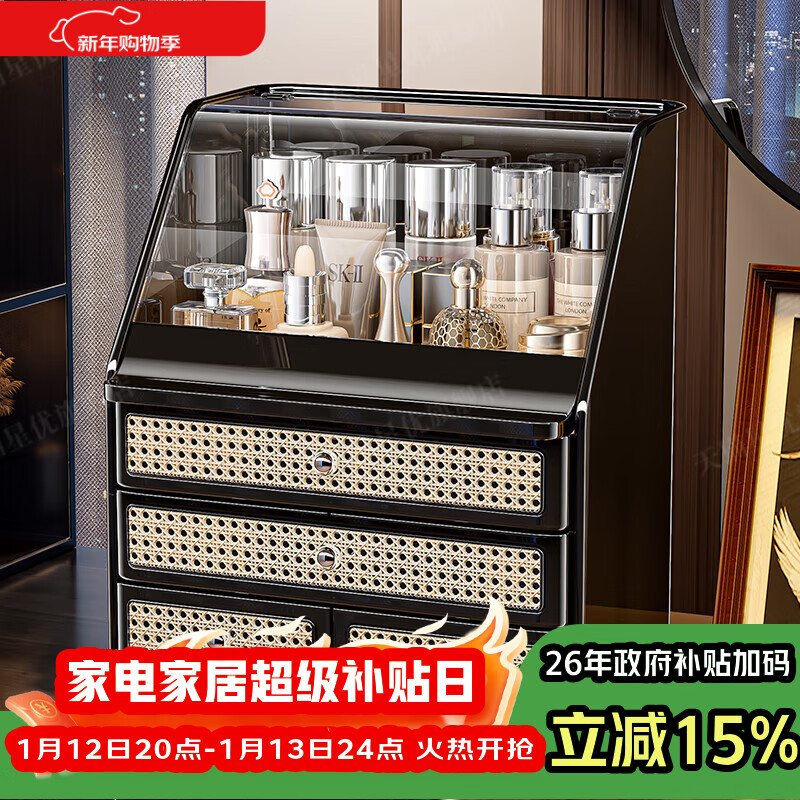 欧拉象 OLA XIANG中古风化妆品收纳盒抽屉式大容量梳妆台桌面防尘口红护肤品置物架