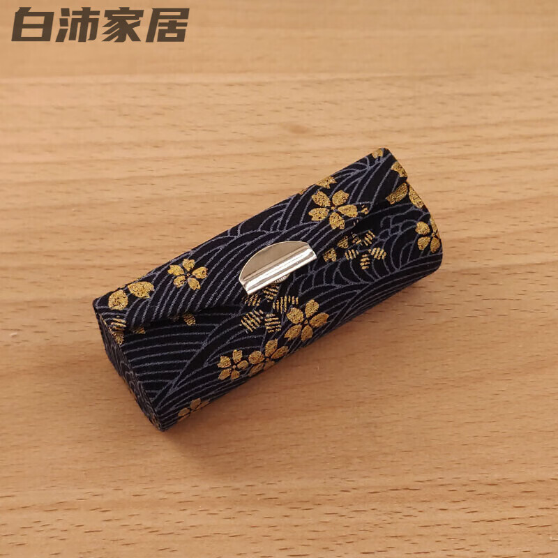 豪金聚高档口红盒收纳盒携带 日式复古风和风随身单只口红盒子小号收纳 樱花蓝色_单只