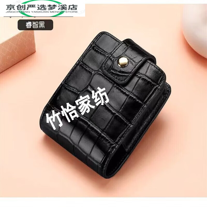 口红收纳盒随身口红包真牛皮鳄鱼纹小镜子随身带网红便携化妆的 厚款材质睿智黑