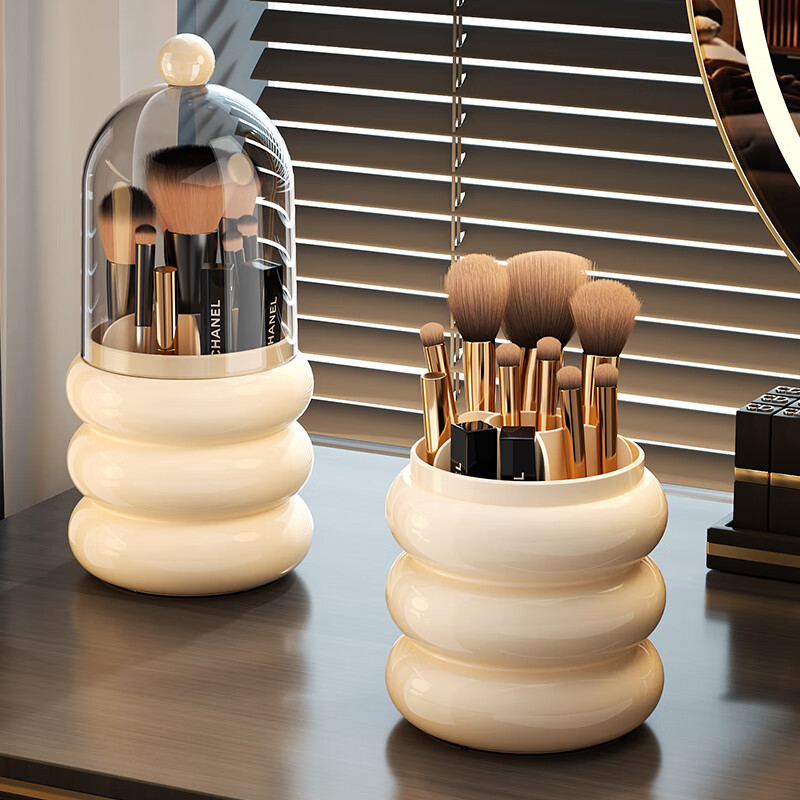 KAMAN化妆刷收纳筒防尘高级感梳妆台化妆品收纳盒家用眉笔口红分格刷筒 旋转刷筒【带盖】1个
