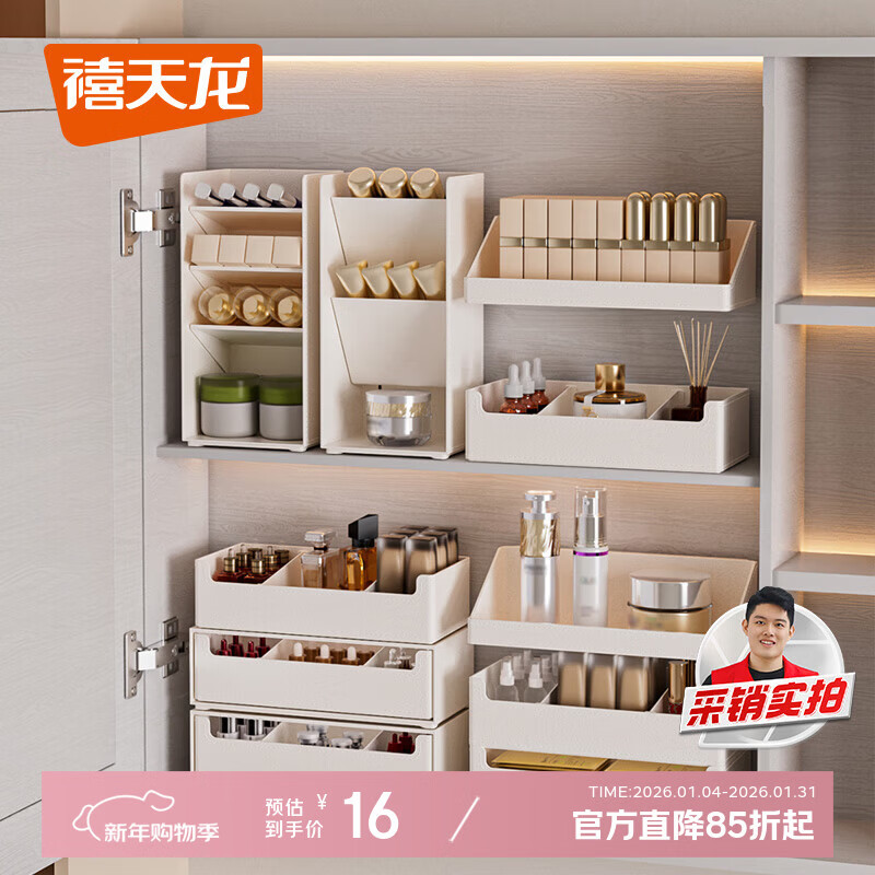 禧天龙直角镜柜收纳盒化妆品口红桌面抽屉整理盒浴室洗漱台置物架分隔式