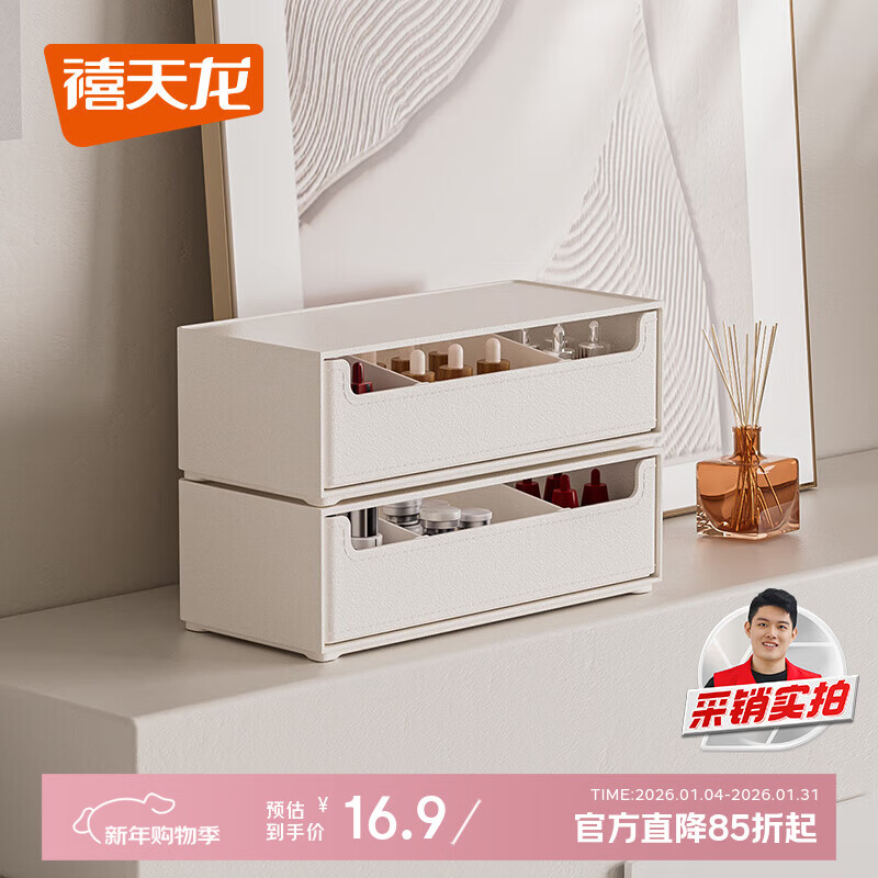 京东物流 抽屉式化妆品收纳盒宿舍书桌护肤品桌面梳妆台面膜口红 ins风桌面收纳盒