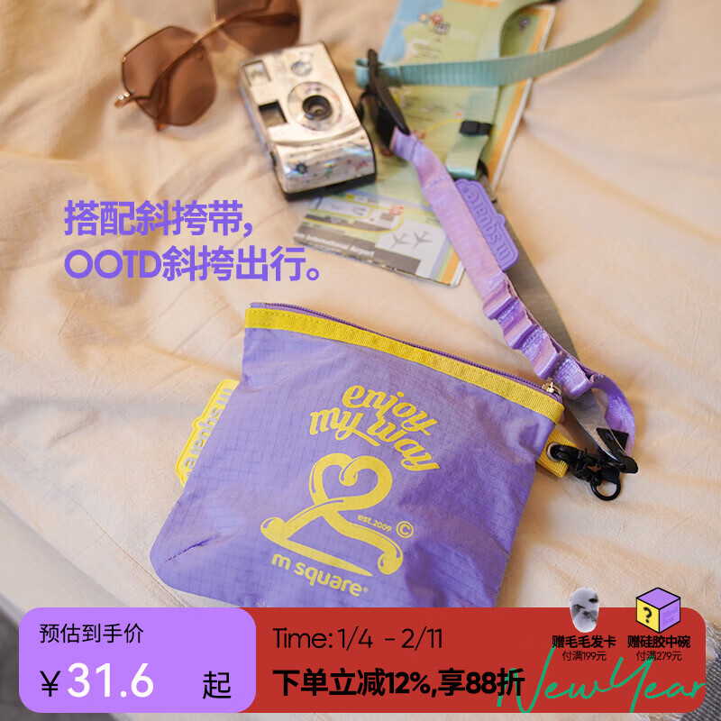M Square便携化妆包外出薄款多功能收纳袋口红化妆品收纳包轻量化出差旅行 熏衣紫S【不含挂绳】