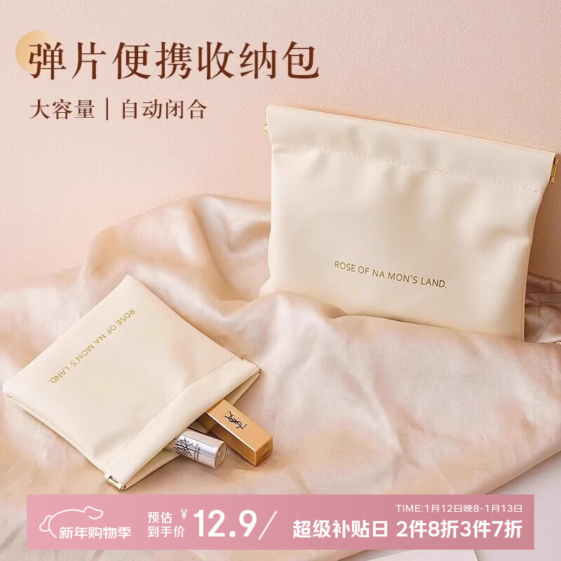 收纳包弹片自动闭合零钱包化妆包口红数据线钥匙小物件便携收纳袋 白色大号-1个装 无规格