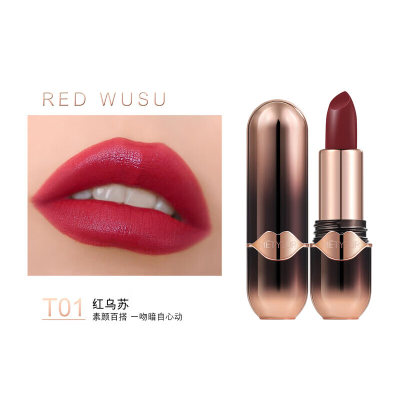 美媞秀(Metysur)雾面哑光口红唇釉持久不掉色不沾杯保湿滋润正品官方旗舰店 T01#冷红色 【下单满两件可减5元】
