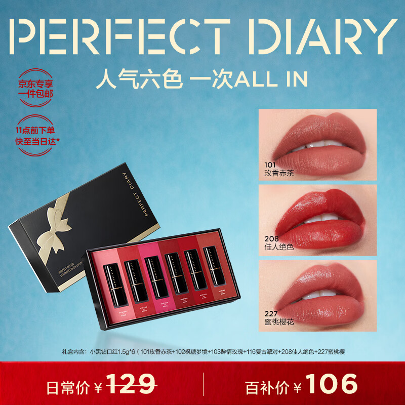 完美日记倾色慕光唇膏迷你礼盒6支装礼盒六色口红小支装新年礼物送女生