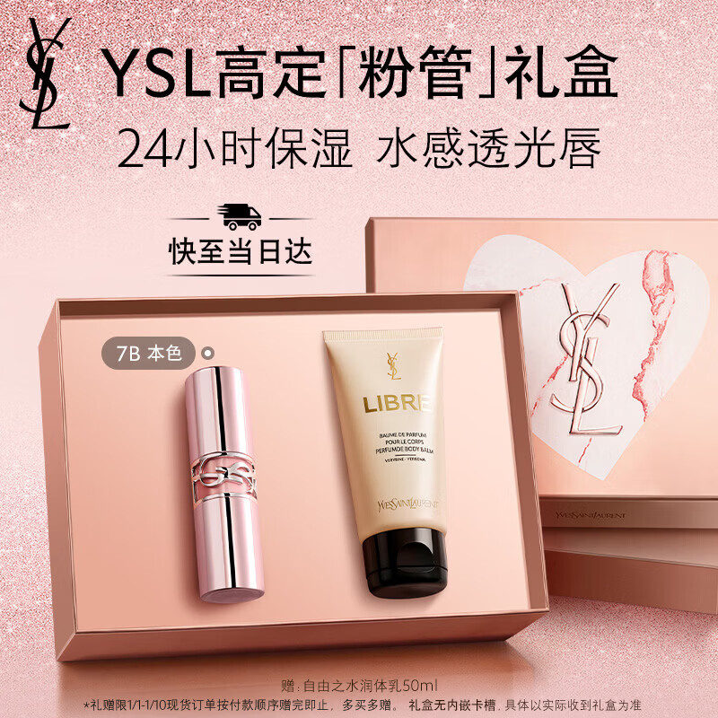 YSL圣罗兰粉管润唇膏7B滋润口红保湿显色化妆品生日礼物送女友新年礼物