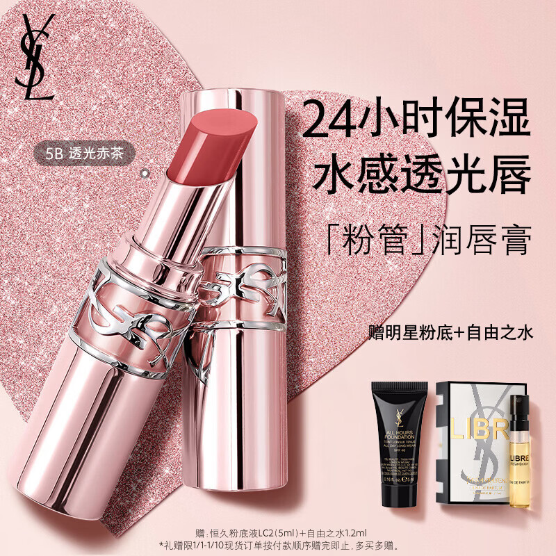 YSL圣罗兰粉管润唇膏5B滋润口红显色化妆品生日礼物送女友新年礼物