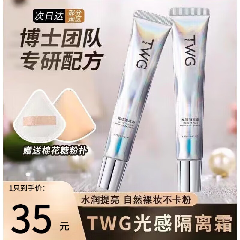 TWG娜涟娜莲光感隔离霜保湿提亮素颜霜妆前自保湿营娜涟官隔离方旗舰 【光感隔离霜*2支】
