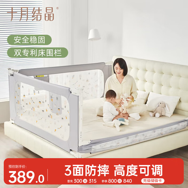 十月结晶床围栏围栏防护栏婴儿床上防摔床边安全挡婴儿三面 高级灰1.8+2+2