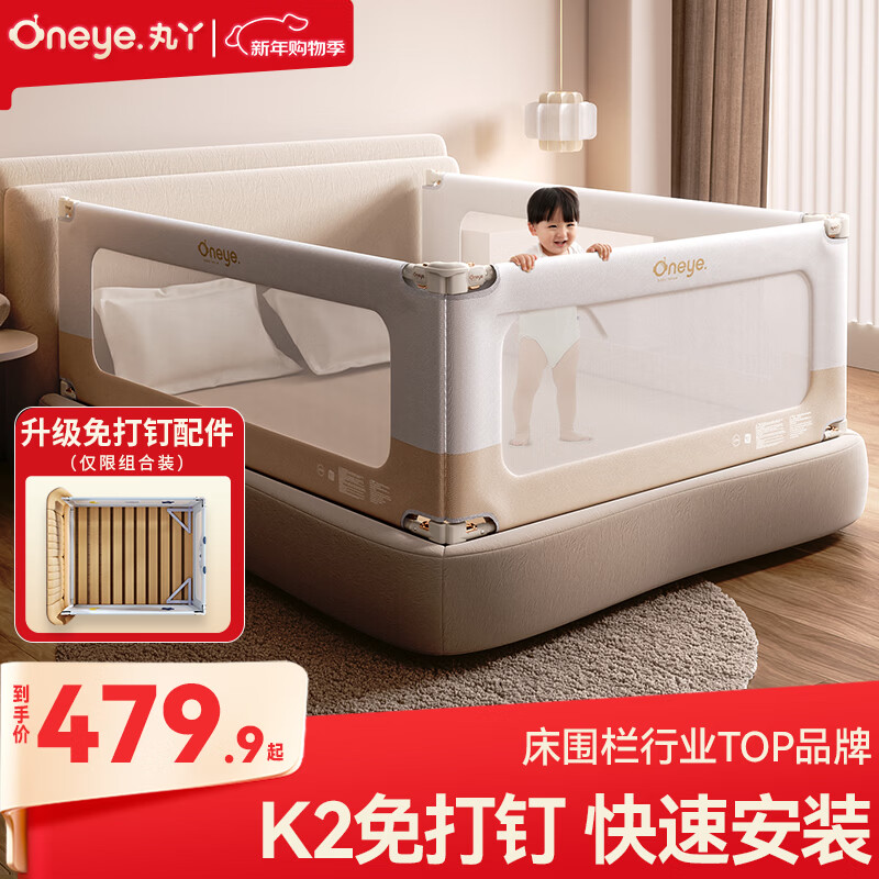 丸丫K2婴儿床围栏宝宝防摔护栏床边防掉档板免打孔加固三面1.5*2.0
