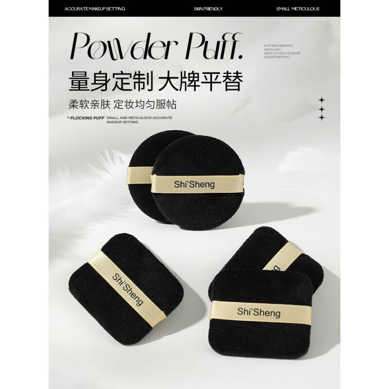 彩妆鹿naars大白饼专用植绒粉扑替换定妆散粉粉扑纳斯粉饼黑色方形