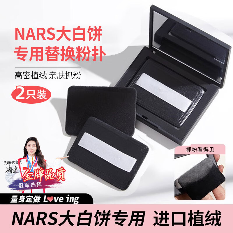 美泰彤narrs大白饼粉扑替换2只 植绒粉扑黑色纳斯定妆粉饼散粉专用超薄