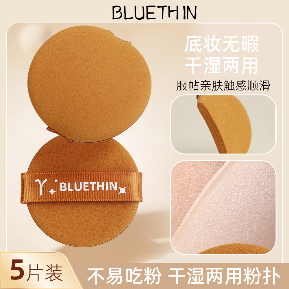 BLUETHIN干湿两用气垫粉扑双面柔软不吃粉海绵粉底液粉饼散粉专用定妆粉扑 棕色粉扑 5枚 【盒装】