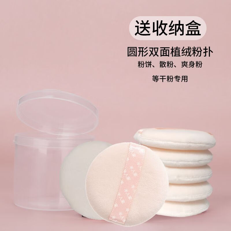 欧亿姿散粉扑植绒定妆隔离干用蜜粉扑替换专用双面短绒细腻柔软不吃粉 【圆形】 5枚 +收纳盒