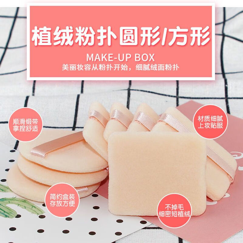 散粉扑定妆植绒粉扑散粉气垫粉饼粉扑蜜粉定妆不吃粉专用化妆粉扑 方形10片【赠送收纳袋】 1件