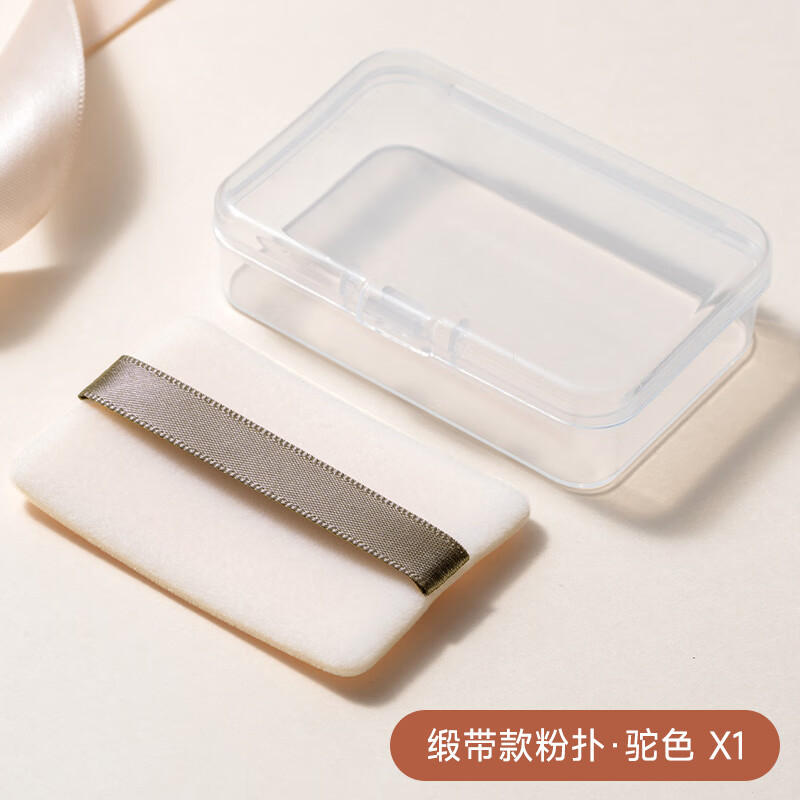 适用于纳斯大白饼粉饼专用粉扑蜜粉干粉定妆气垫散粉方形植绒 丝带款驼色装 送粉扑收纳盒 1个