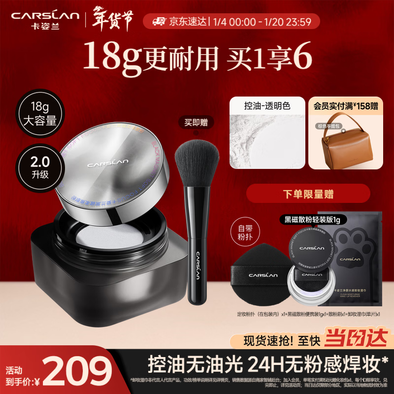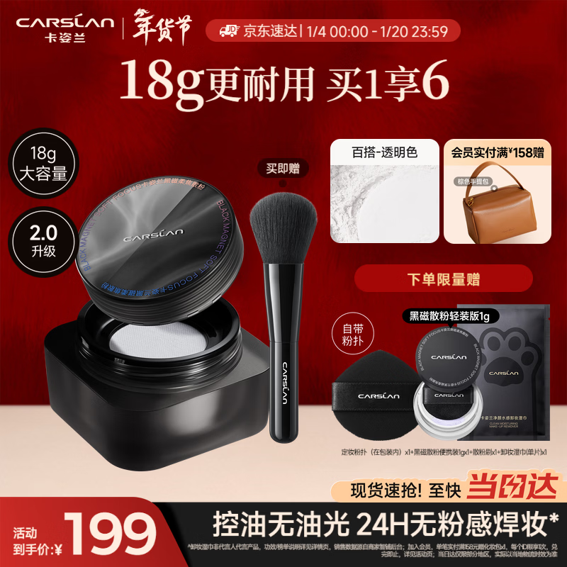 卡姿兰(Carslan)黑磁散粉2.0大容量(控油透明)18g定妆粉饼控油遮瑕持久防汗新年女