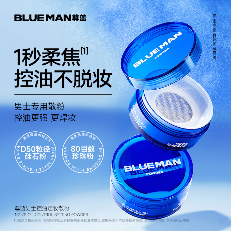 尊蓝男士控油定妆粉散粉配合BB霜素颜霜较久遮瑕蜜粉裸装彩妆化妆品