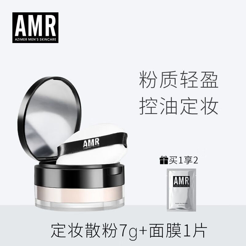 AMR男士散粉蜜粉控油防水定妆修容粉饼哑光自然遮瑕持妆 【男士定妆散粉】单盒+面膜1片