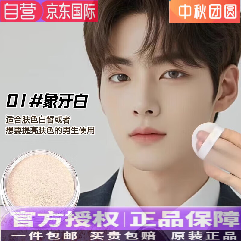 【官方旗舰】散粉定妆粉控油粉饼男士持久不脱妆自然简单修容遮瑕 01象牙白