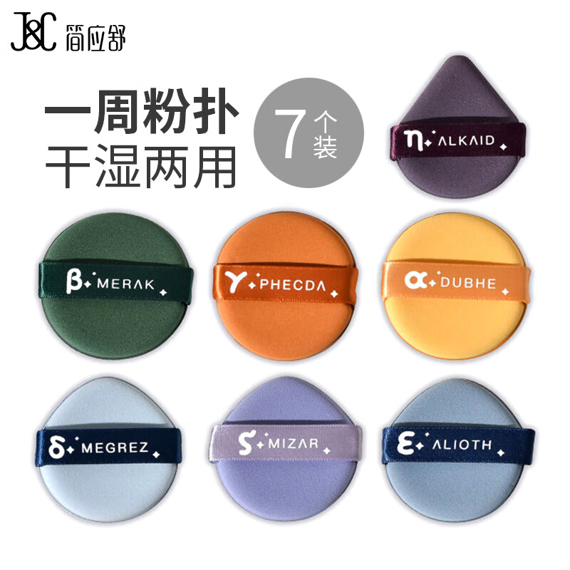 简应舒一周粉扑7枚装 粉扑气垫三角粉饼定妆粉扑不吃粉干湿两用美妆工具