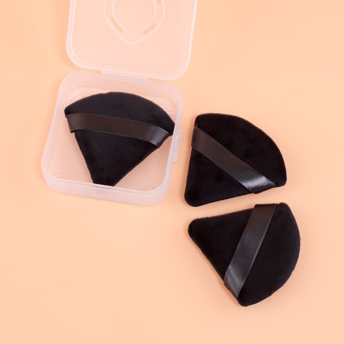 皮面三角粉扑海绵美妆蛋化妆球散粉小块粉饼定妆 黑色三角粉扑+三角收纳盒 1件