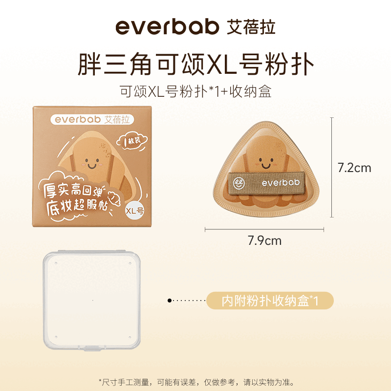 everbab胖三角粉扑 可颂棉花糖气垫粉扑粉底液专用定妆粉扑 1件 胖三角可颂粉扑XL号*1
