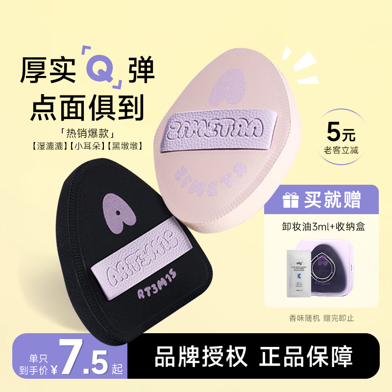 凹凸迷思程十安 凹凸迷思气垫粉扑不吃粉三角腮红遮瑕定妆拇指粉底液专用 【爆款】嘿嘿黑 粉扑2 2枚 装