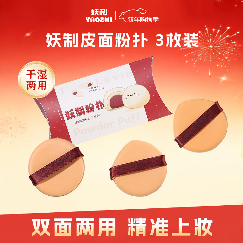 妖制粉扑粉底液专用官方三角粉饼扑气垫不易吃粉定妆海绵 透气3枚装