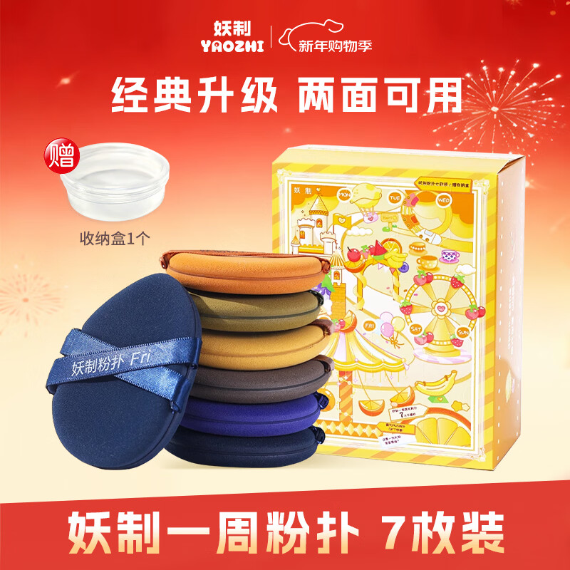 妖制一周粉扑7枚粉扑气垫不吃粉生日礼物新年礼物女三角粉饼定妆套盒