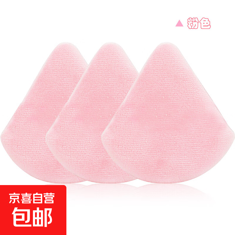 美妆气垫粉扑 定妆无死角植绒心形三角粉扑干湿两用不吃粉5/3/1枚 三角粉扑 粉色 3个