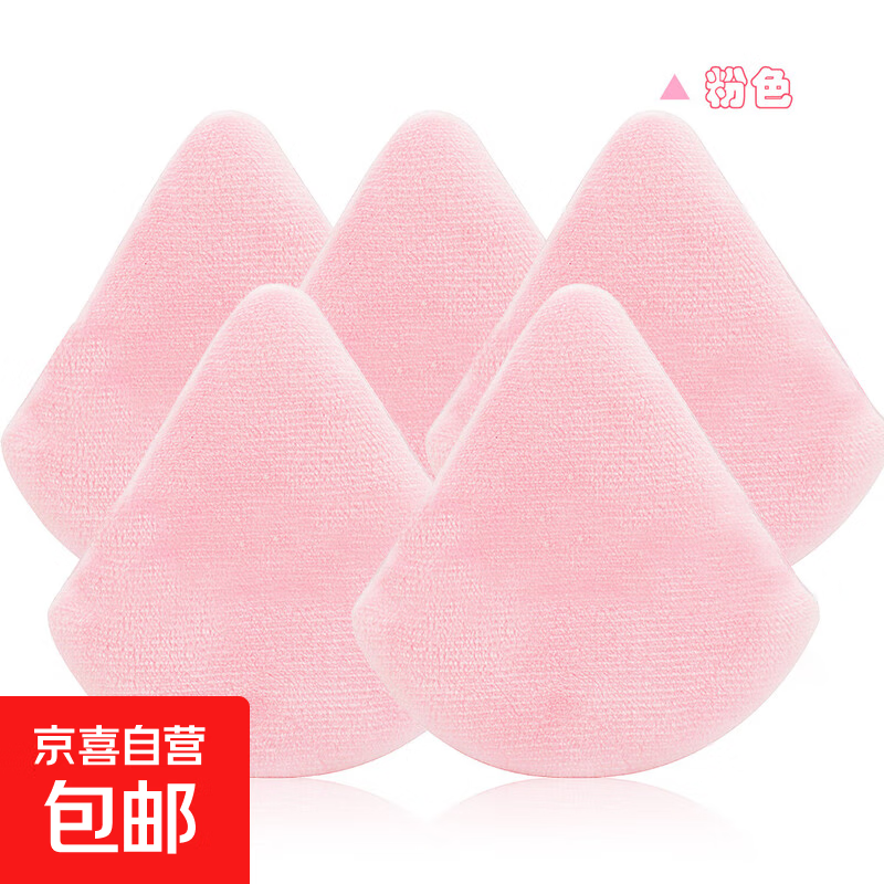 美妆气垫粉扑 定妆无死角植绒心形三角粉扑干湿两用不吃粉5/3/1枚 三角粉扑 粉色 5个