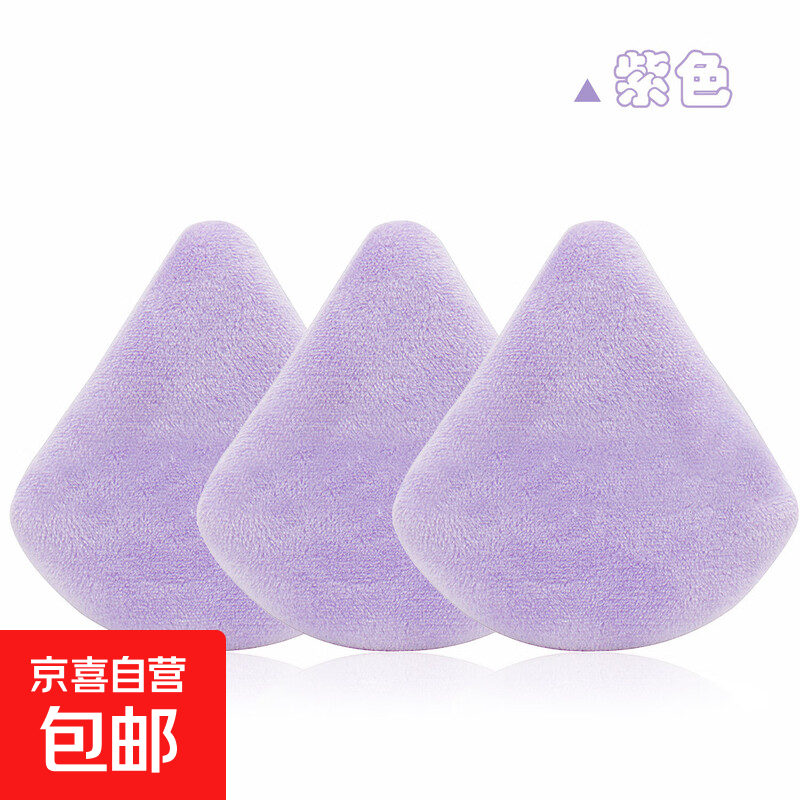 美妆气垫粉扑 定妆无死角植绒心形三角粉扑干湿两用不吃粉5/3/1枚 三角粉扑 紫色 3个