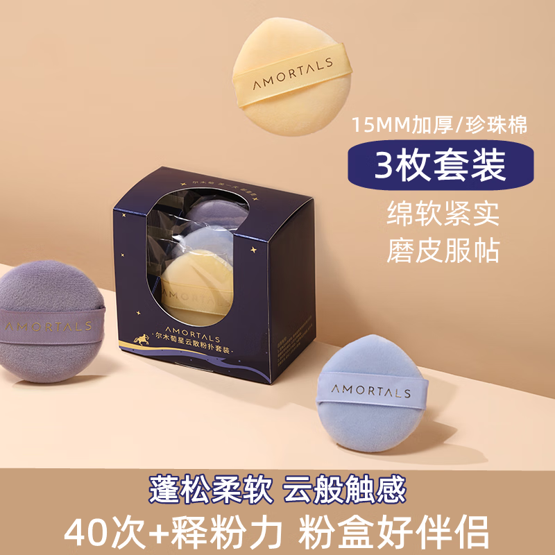 尔木萄(AMORTALS) 星云散粉扑套装3枚装 散粉粉扑 不易吃粉服帖 底妆定妆 美妆工具 尔木萄星云散粉扑小号