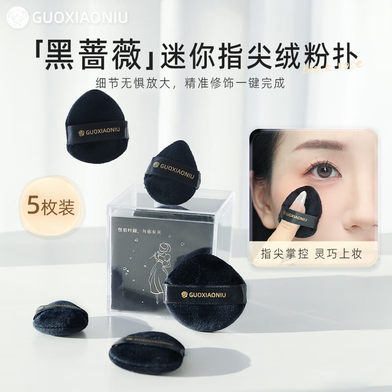 GUOXIAONIU郭小妞黑蔷薇迷你指尖粉扑面部遮瑕定妆小号蜜粉拇指绒粉扑散粉扑 黑蔷薇指尖粉扑 5枚