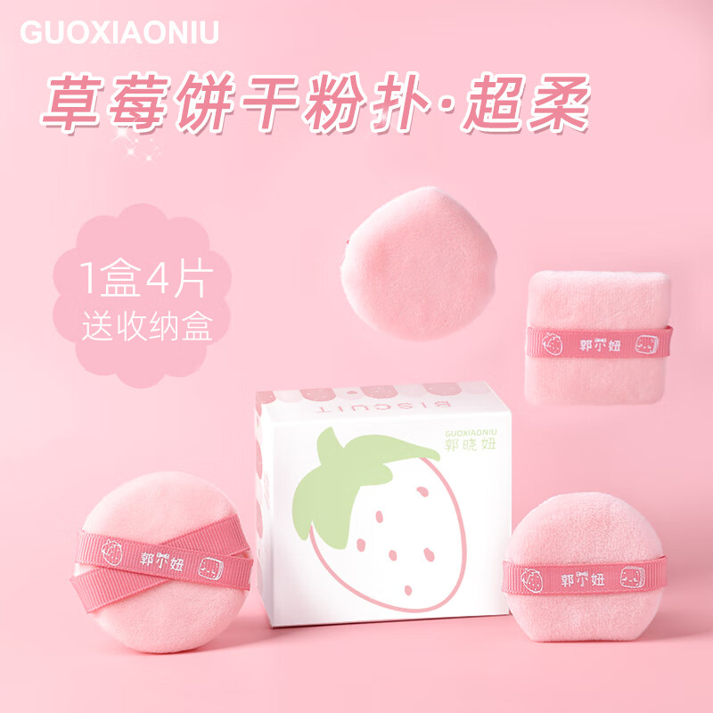 GUOXIAONIU郭小妞草莓饼干绒粉扑小号圆形定妆粉扑散粉扑蜜粉扑柔软上妆工具 草莓饼干粉扑 4枚