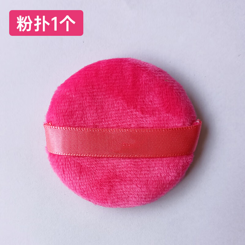 [尾货处理]单面丝带干粉扑彩色勾扑圆形小号植绒散粉扑蜜粉扑定妆 尾货-红色 1个