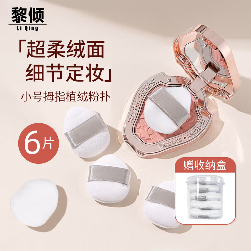 黎倾植绒拇指粉扑【6片盒装】腮红高光小号细节定妆散粉扑蜜粉扑