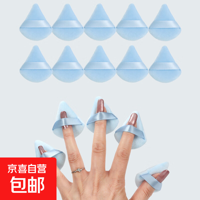 指尖粉扑小号细节定妆蜜粉扑腮红高光粉饼立绒干粉补妆拇指散粉扑 迷你蓝色三角 10个