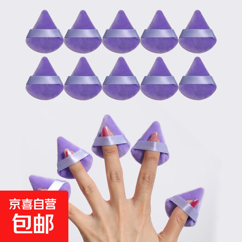 指尖粉扑小号细节定妆蜜粉扑腮红高光粉饼立绒干粉补妆拇指散粉扑 迷你紫三角 10个