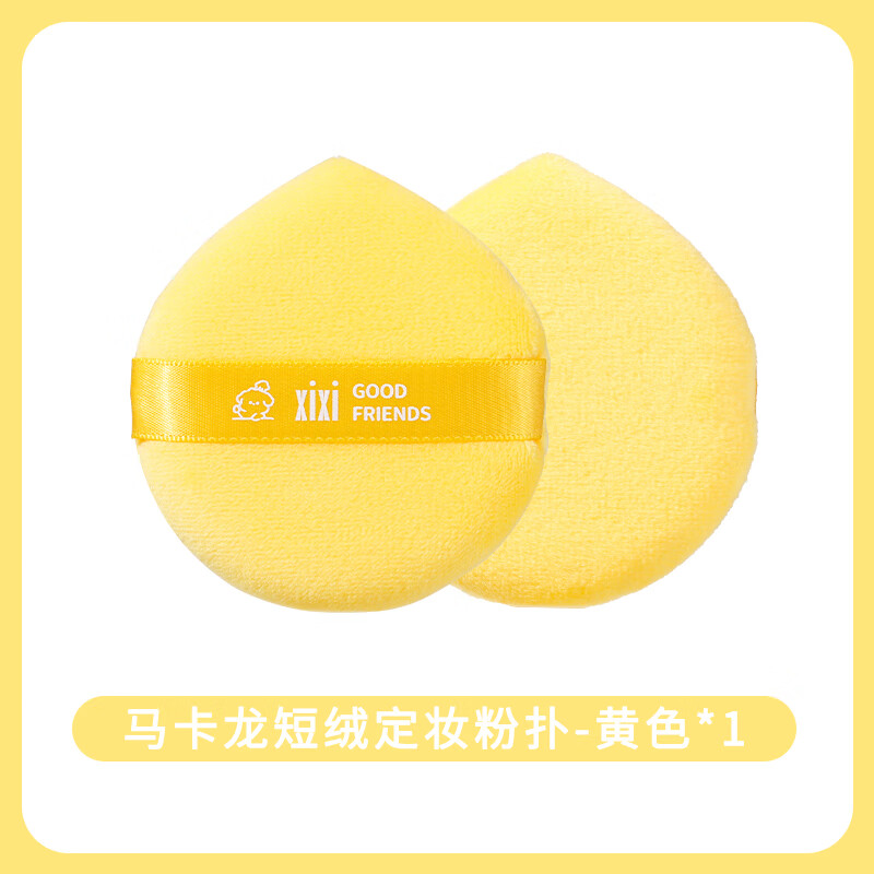 xixi马卡龙短绒定妆粉扑植绒气垫绒面蜜粉饼散粉化妆海绵干粉专用平价 马卡龙短绒定妆粉扑-黄色 1枚
