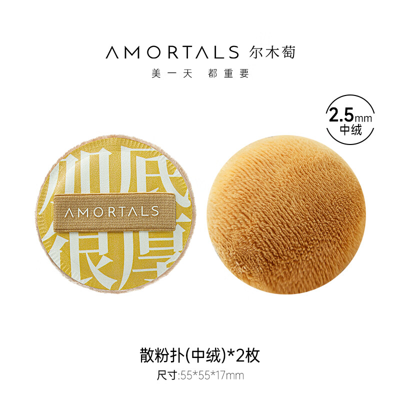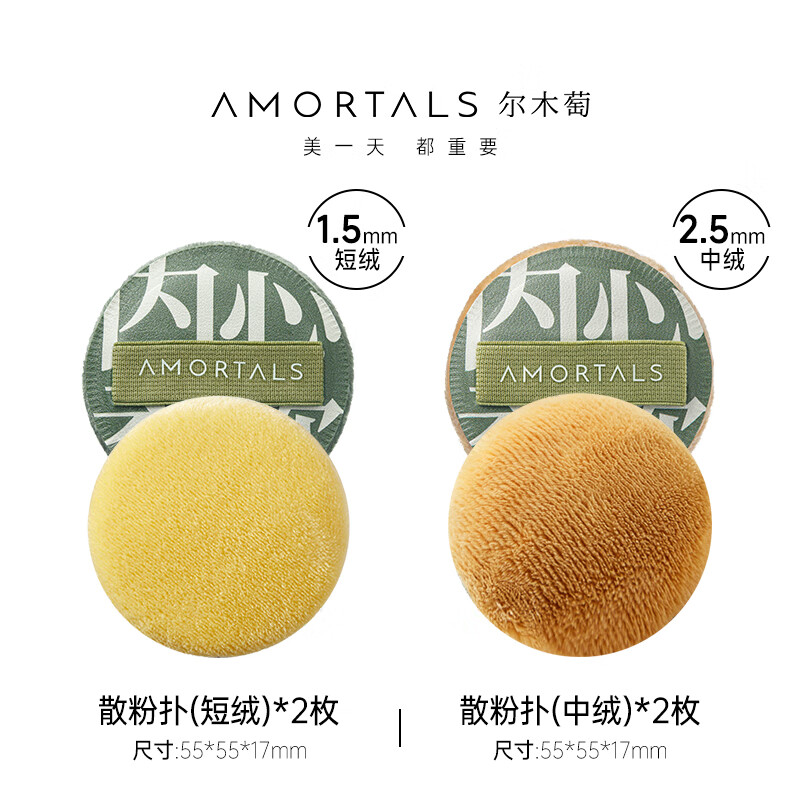 尔木萄(AMORTALS)定妆加分系列粉扑植绒粉扑粉饼定妆散蜜粉短绒清透替换专用 散粉扑(中绒圆形) 2枚