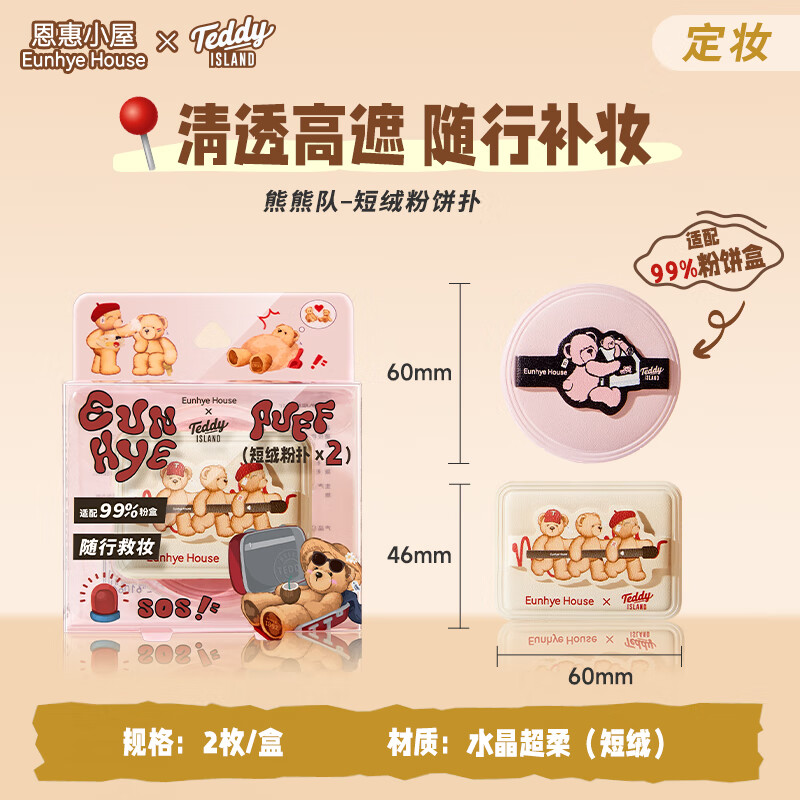 恩惠小屋(EunhyeHouse)气垫粉扑定妆服帖散粉饼化妆工具散粉彩妆干湿海绵熊熊队短绒粉扑