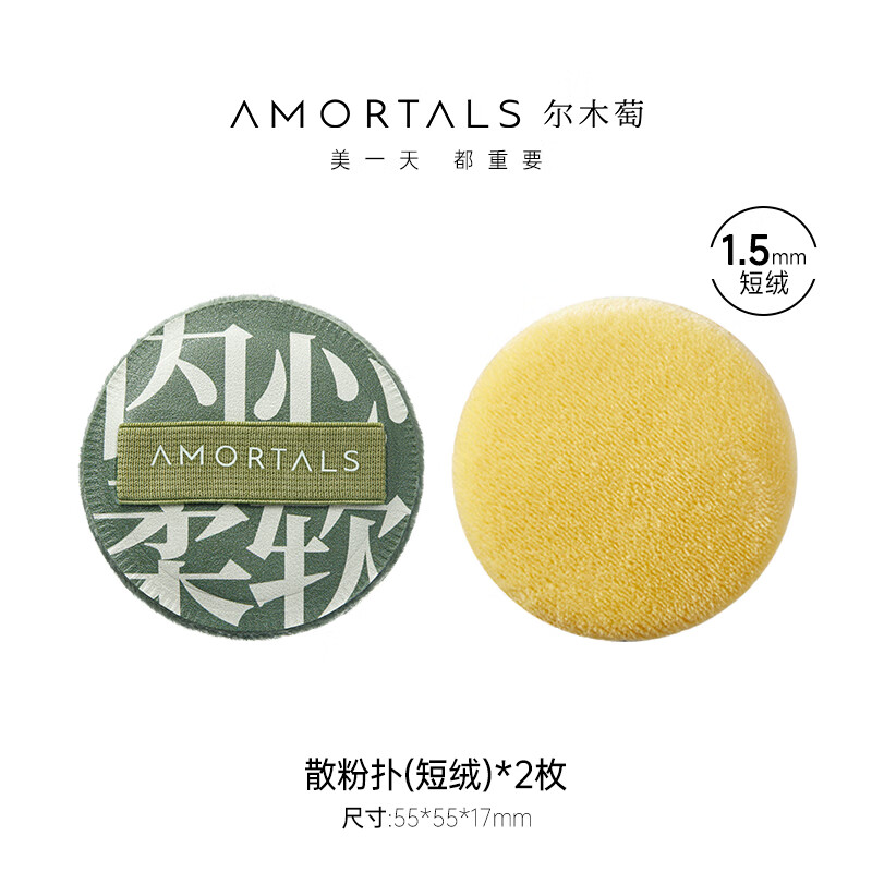 尔木萄(AMORTALS)定妆加分系列粉扑植绒粉扑粉饼定妆散蜜粉短绒清透替换专用 散粉扑(短绒圆形) 2枚